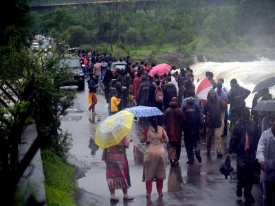 खडकवासला धरण भरले : पुणेकरांची गर्दी