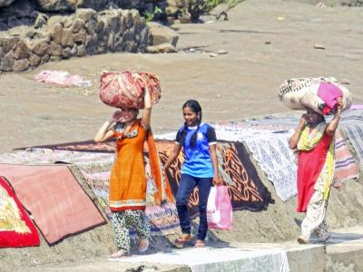 नवरात्रीनिमित्त खडकवासला धरणावर गोधड्या, चादरी धुण्यासाठी लगबग