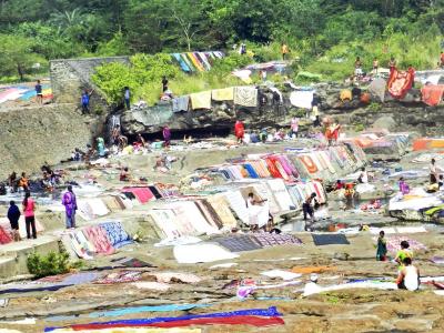 काही जण ऑटोरिक्षा किंवा इतर वाहनांनी कपड्यांचे गठ्ठे घेऊन येतात. कपडे धुऊन झाल्यावर इथेच सुकायला घालतात.