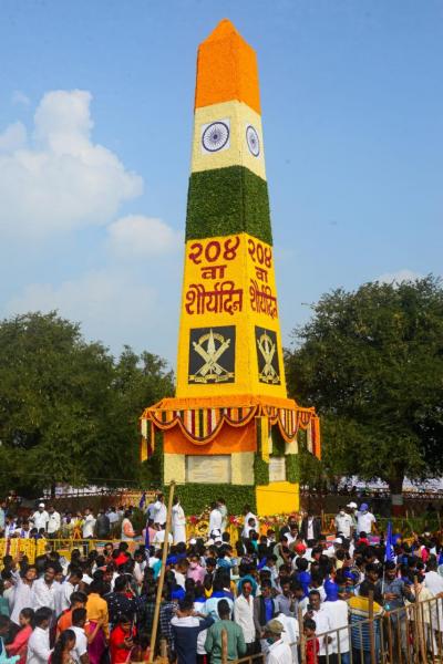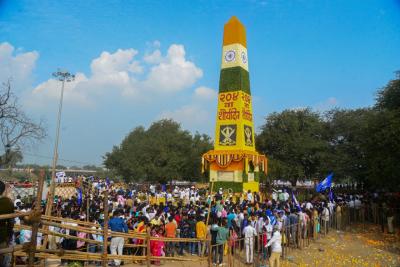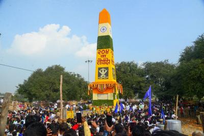 भीमा काठावरील कोरेगाव भीमा नजीक ऐतिहासिक विजय स्तंभास मानवंदना देण्यासाठी आज २०४ व्या विजयदिनी विविध पक्ष, संघटना, व मान्यवरांसह महाराष्ट्रासह विविध राज्यांतून आलेल्या लाखो आंबेडकरी बांधवांनी आज दिवसभर अलोट गर्दी केल्याने स्तंभ परिसरात भीमसागर लोटल्याचे चित्र पाहण्यास मिळाले. यावेळी विविध पक्ष, सामाजिक संघटनांच्या वतीने अभिवादन सभांचे आयोजन करण्यात आले होते. पोलीस व जिल्हा प्रशासनाच्या सतर्कतेमुळे यावर्षी मानवंदनेसाठी येणा-या बांधवांची उत्तम व्यवस्था झाली असल्याने समाज बांधवांनी प्रशासनाचे आभार मानले होते. (सर्व फोटो- तन्मय ठोंबरे)