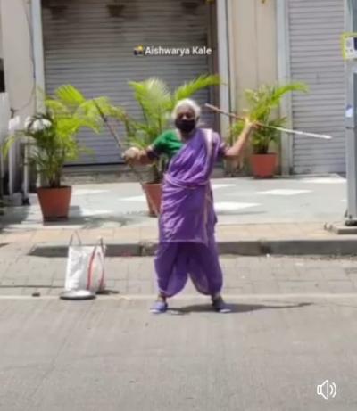 आजीबाईने मनात कोरोनाची भीती न बाळगता, रस्त्यावरच आपला लाठी-काठीचा खेळ सुरु केला. वयाच्या 85 व्या वर्षीही त्यांचा उत्साह तरुणाईला लाजवेल असाच आहे.