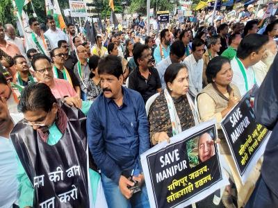 मणिपूर जळतंय, लोकशाही वाचवा अशा घोषणा देण्यात आल्या
