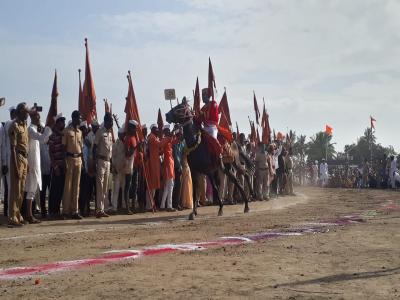 अश्व रिंगण सोहळ्याची सुरूवात अक्षय मचाले यांच्या मानाच्या मेंढ्यांचे रिंगण झाले. यानंतर टाळकरी, विणेकरी, तुळसी वृंदावन धारक महिला, झेंडेकऱ्यांचे रिंगण पार पडले.