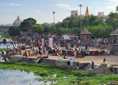 आबाल वृद्धांनी इंद्रायणी नदीकाठी अंघोळीसाठी मोठी गर्दी केली होती