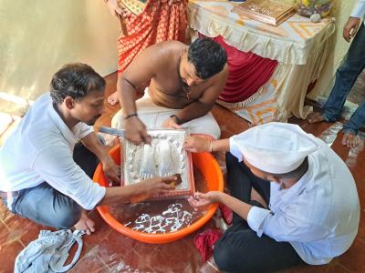 श्री संत तुकाराम महाराजांच्या पादुका येथील सुनील घोडेकर सराफ यांच्या कुटुंबीयांनी चकाकी दिली