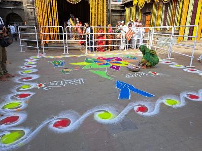 मंदिराला बाहेरूनही फुलांची सजावट करण्यात आली होती.