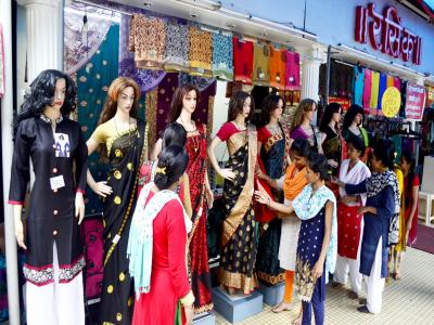 काळ्या रंगाची साडी खरेदीसाठी महिलांची लगबग (फाेटाे : तन्मय ठाेबरे )
