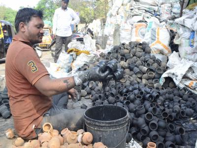 कुंभारवाड्यात बाेळकी बनविण्याचे काम वेगाने सुरु आहे. (फाेटाे : तन्मय ठाेबरे )