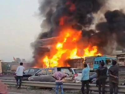 दोन कंटेनर आणि एका कारच्या झालेल्या जबरदस्त अपघातात काही क्षणांतच ७ जण जळून खाक झाले, तर तब्बल २० ते २२ जण जखमी झाले. गुरुवारी (दि. १३) सायंकाळी साडेपाचच्या सुमारास कात्रज बोगद्याकडून नवले पुलाकडे येणाऱ्या महामार्गावर हा अपघात झाला.