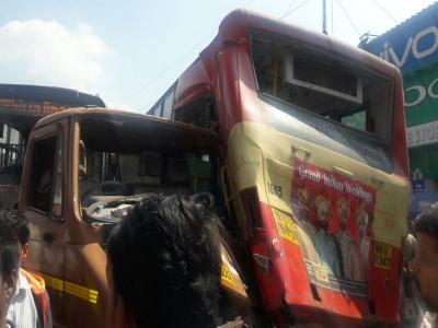 अपघात घडला त्याचवेळी मुक्तांगण शाळेची बसदेखील त्या ठिकाणी आली होती, सुदैवानं विद्यार्थ्यांना कोणत्याही प्रकारे इजा झालेली नाही