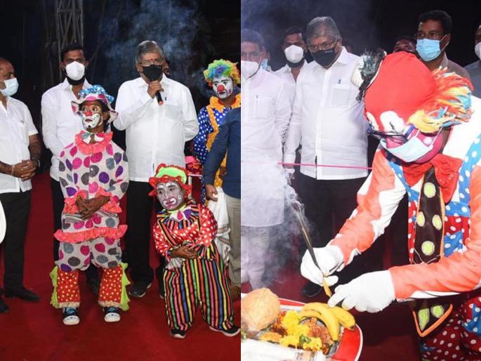 Pune : कडक निर्बंधातही चंद्रकांत पाटलांकडून रॅम्बो सर्कसचं उद्घाटन, जोकरचा केला सन्मान