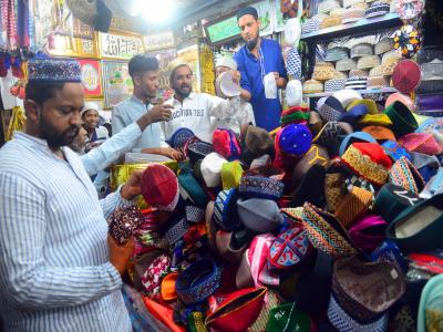 रमजाननिमित्त रंगबेरंगी टोप्यांनी बाजारपेठ सजलेली दिसली.
