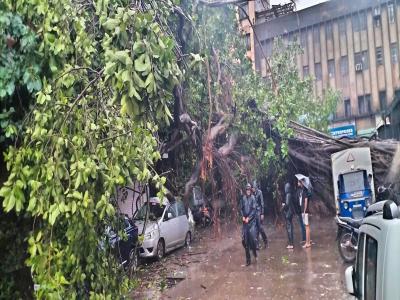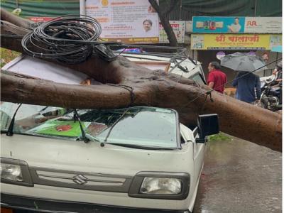 मुसळधार पावसासह सोसाट्याचा वारा सुरू असल्याने शहरातील अनेक ठिकाणी झाडे पडल्याच्या घटनाही घडल्या आहेत.
