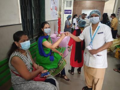 कोरोना लसीकरणाच्या पूर्वी डॉक्टर व लास घेणाऱ्या महिलांनी एकमेकांना दिल्या लई भारी शुभेच्छा