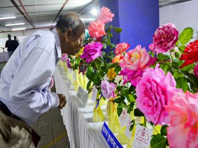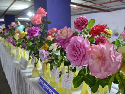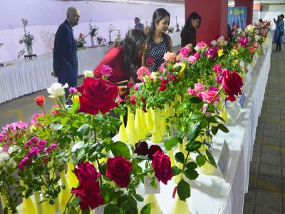 या प्रदर्शनात रंगबेरंगी गुलाबाची फुले आकर्षक रंगसंगती मांडण्यात आली आहेत.