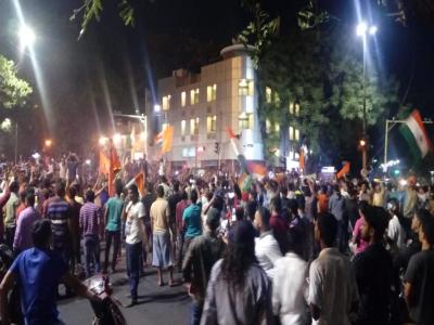 भारताच्या विजयानंतर रविवारी रात्री तरुणाई फर्ग्युसन रस्त्यावर उतरलेली तरुणाई