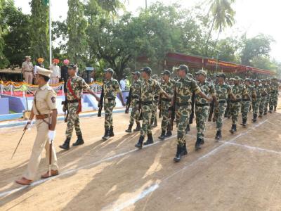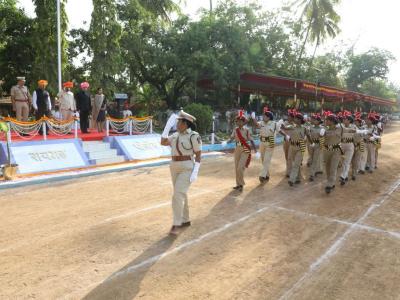 परेड कमांडंट भास्कर महादेव शेंडे यांच्या नेतृत्वात झालेल्या शानदार संचलनात पोलीस दल, होमगार्ड, वज्र पथक, अग्निशामक दल, नागरी संरक्षण दल, श्वान पथक, बॉम्ब शोध व नाश पथक आदी पथकांनी सहभाग दिला.