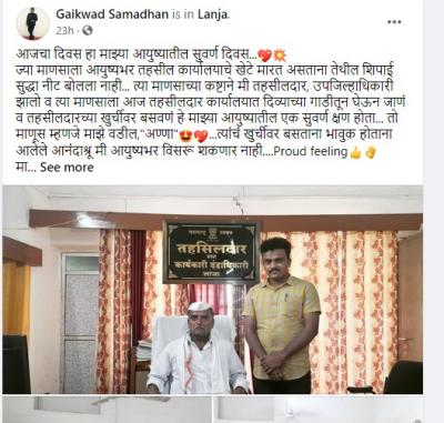 सालगडी असलेल्या वडिलांच्या चेहऱ्यावरील आनंदही आपल्या शब्दात व्यक्त केला आहे. अण्णा” तहसिलदाराच्या खुर्चीवर बसताना भावुक होताना आलेले आनंदाश्रू मी आयुष्यभर विसरू शकणार नाही. अण्णा, आपण जिंकलोय... असे समाधान यांनी लिहिलं आहे.