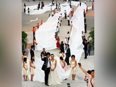 चीनमधील या जोडप्यांनी २०० मिटरचा ड्रेस घालून लग्न केलं. गिनीज बुक ऑफ वर्ल्ड रिकॉर्डसमध्ये याचा उल्लेख आहे.