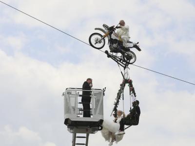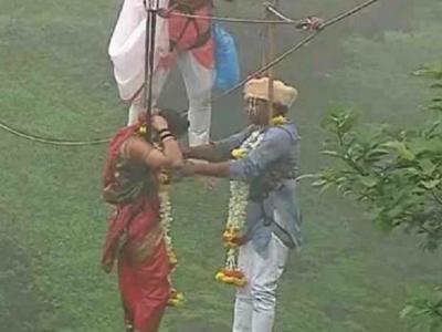 महाराष्ट्रातील कोल्हापूरातील या जोडप्याने ६०० फुट उंच हवेत लटकून लग्न केले आहे.