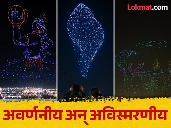 1 / 7अवर्णनीय आणि अविश्वसनीय, असं वाटेल असाच शो महाकुंभमेळ्याला आलेल्या भाविकांना बघायला मिळाला.2 / 7२५०० ड्रोनच्या सहाय्याने प्रयागराजच्या आकाशात शंखनाद, समुद्र मंथन आणि कलशातून पडलेलं अमृत आदी साकारण्यात आले.3 / 7संस्कृती, अध्यात्म आणि तंत्रज्ञानाचा सुरेख मिलाफ यानिमित्ताने कोट्यवधि भाविकांना बघायला मिळाला.4 / 7शुक्रवारी (२३ जानेवारी) झालेल्या ड्रोन शोची सुरूवात शंखनाद करून झाली. त्यानंतर समुद्र मंथन काव्य आकाशात जिवंत होताना भाविकांनी बघितले. 5 / 7कुंभ कलशातून अमृताची थेंब पडले आणि भाविकांनी हात जोडले. या ड्रोन शो साठी वेगवेगळ्या संकल्पनांची निवड करण्यात आली होती. 6 / 7समुद्र मंथनानंतर महादेव विष प्राशन करताना दाखवण्यात आले. त्याचबरोबर इतरही प्रसंग ड्रोनच्या सहाय्याने साकारण्यात आले.7 / 7शो सुरू झाल्यानंतर प्रयागराजचे आकाश रंगीबेरंगी प्रकाशाने उजळून निघाले. शो सुरू झाल्यानंतर देशाच्या वेगवेगळ्या भागातून आलेले भाविक थक्क होऊ बघत राहिले.