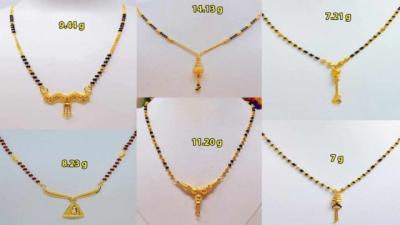 जर तुम्हाला गोल्डन ब्लॅक हे कॉम्बिनेशन्स खूप आवडत असेल तर यात बरेच प्रकार पाहायला मिळतील. ग्रॅम आणि डिजाईन्सनुसार मंगळसुत्राच्या किंमतीत बदल झालेला दिसेल.