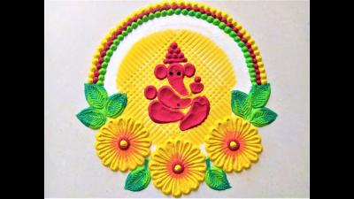 10 Easy Ganesh Chaturthi rangoli Designs : गणपतीच्या रांगोळीसाठी पिवळा, नारंगी, लाल, हिरवा पांढरा हे रंग वापरू शकता.