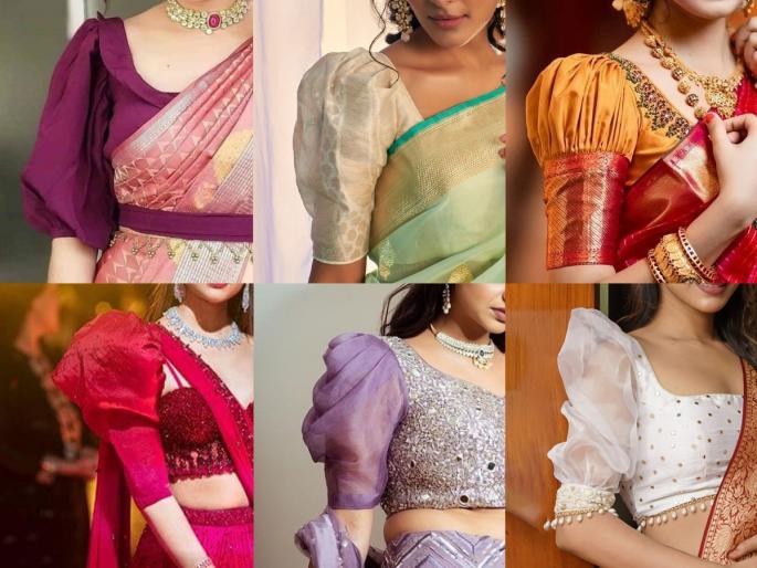 नव्या साड्यांवर शिवा पफ स्लिव्हजचे ब्लाऊज पॅटर्न्स; फुग्यांच्या बाह्यांची नवीन स्टाईल देईल मॉडर्न लूक