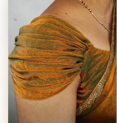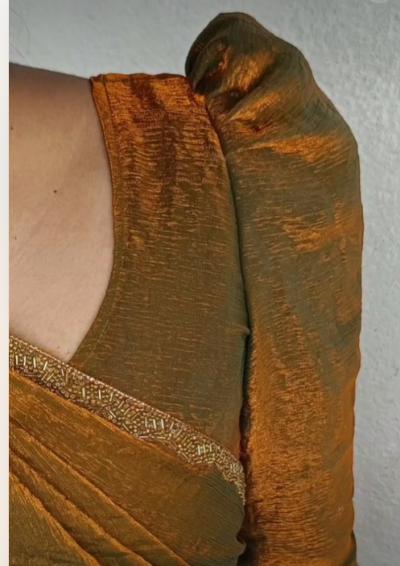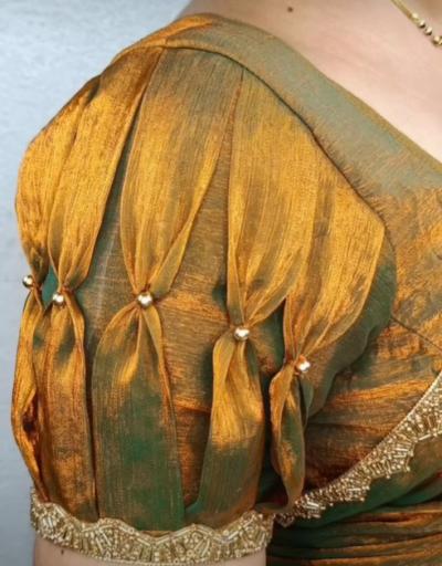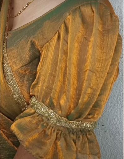 स्लिव्हज साधे असले तरी खांद्याच्या भागाला असा थोडा बलून स्टाईल लूक असेल तर ब्लाऊज खूपच छान दिसते.
