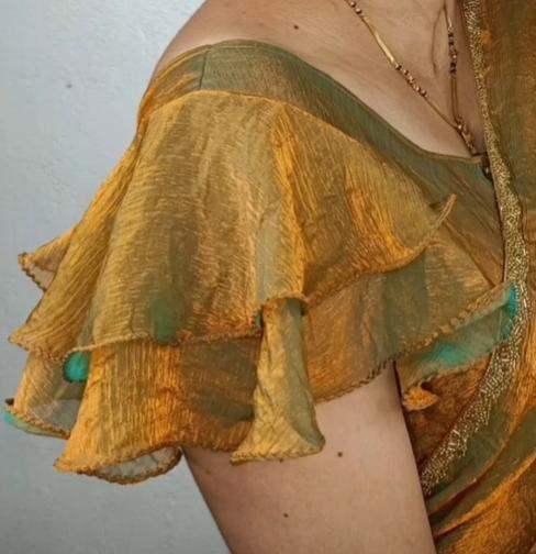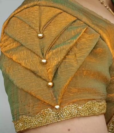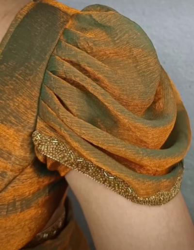 जर तुम्हाला छोट्या बाह्या हव्या असतील तर तुम्ही यावर चुण्या पाडून मध्यभागी मणी लावण्यास देऊ शकता.