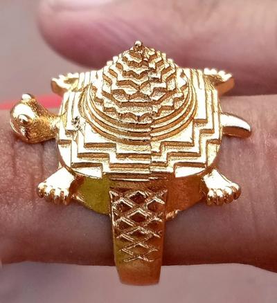 अशा पद्धतीची श्री यंत्र असणारी अंगठीही कासव अंगठी या प्रकारात मिळते.