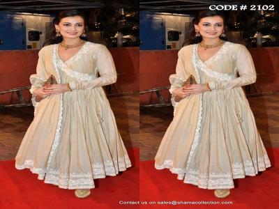 २. अंगरखा अनारकली सेट- हा आहे अंगरखा प्रकारातला अनारकली ड्रेस. नेहमीच्या अनारकली लूकपेक्षा हा थोडा वेगळा लूक देतो. जर तुम्ही थोड्या जाड असाल किंवा उंची कमी असेल तर अशा पद्धतीचा अंगरखा अनारकली ड्रेस घ्या. यामध्ये तुम्ही बारीक दिसू शकता तसेच जास्त स्मार्ट लूक मिळू शकतो.