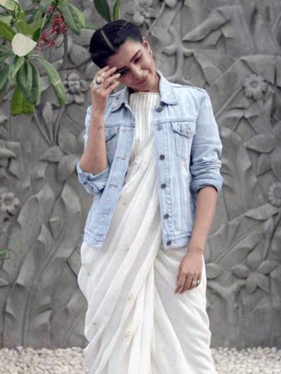 जर तुम्ही बिल्कुल नविन ढंगात साडी नेसण्याचा विचार करत आहात तर हा पर्याय खूप छान आहे. तुमच्याकडे एखादे हटके डेनिम जॅकेट असेल तर साडी नेसल्यावर त्यावर डेनिम जॅकेट घातल्यास वेस्टर्न लूक येईल.