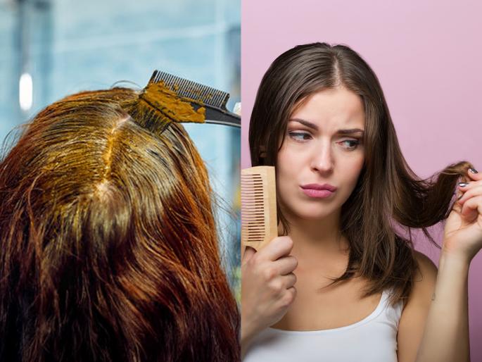 1 / 8आपणही केसांना नैसर्गिकरित्या रंगविण्यासाठी मेहंदी वापरतो का? तर आपल्याला वेळीच थांबायला हवे. मेहंदी लावल्याने आपल्या केसांवर दुष्परिणाम होतो. (Is applying Mehendi on the scalp safe)2 / 8यामुळे आपले केस कोरडे आणि निर्जीव होतात. यात असणारे टॅनिन केसांमधील नैसर्गिक तेल काढून टाकते. ज्यामुळे केस कोरडे होतात. तसेच केसांना फाटे फुटण्याची आणि तुटण्याची शक्यता अधिक असते. (Side effects of using Mehendi on hair)3 / 8केसांवर मेहंदी लावल्याने केसांचा पोत खराब होतो. त्यामुळे केसांवर जाड थर तयार होतो. केसांची गुणवत्ता कमी होते. 4 / 8सतत मेहंदी वापरल्याने टाळूची छिद्रे बंद होतात. ज्यामुळे टाळूची त्वचा योग्यरित्या श्वास घेऊ शकत नाही. व्यवस्थितरित्या टाळूला पोषण मिळत नाही. ज्यामुळे केस पातळ होतात. 5 / 8मेहंदी लावल्यानंतर अनेकांना टाळूवर खाज येते, जळजळ होते आणि डोक्यात फोड्या येतात. त्वचा संवेदनशील असल्यामुळे या समस्येला सामोरे जावे लागते. 6 / 8बऱ्याचदा केसांना रंग देण्यासाठी मेहंदी वापरतो. यात असणारे केमिकल केसांन हानी पोहचवतात. ज्यामुळे केस पांढरे होण्याची शक्यता अधिक असते. 7 / 8नैसर्गिक मेहंदीचा थर आपल्या केसांवर अडथळा तयार करतो. या रासायनिक रंगामुळे केसांच्या मुळांवर परिणाम होतो. ज्यामुळे केसगळती होण्यास सुरुवात होते.8 / 8रंग दीर्घकाळ टिकावा यासाठी मेहंदी पावडरमध्ये रासायनिक आणि कृत्रिम रंग वापरतात. हे वापरल्याने आपल्याला स्कॅल्पची अॅलर्जी देखील होऊ शकते.