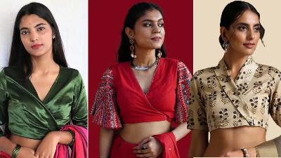 हेवी ब्रेस्ट असलेल्या महिलांसाठी 'रॅप स्टाईल' (Wrap Style) नेकलाईन हा केवळ एक फॅशन ट्रेंड नसून, शरीर सुडौल दाखवण्यासाठी एक 'मॅजिकल' डिझाईन आहे. रॅप स्टाईल म्हणजे ज्यामध्ये ब्लाऊजचे एक टोक दुसऱ्या टोकावर येऊन बांधले जाते किंवा तसा आभास निर्माण केला जातो. याला 'अंगरखा' स्टाईल असेही म्हणतात. रॅप स्टाईलमुळे मिळणारी तिरकी रेषा छातीचा भाग विभागते, ज्यामुळे हेव्ही ब्रेस्ट असूनही शरीर अधिक स्लिम आणि बॅलन्स दिसते. हे डिझाईन स्तनांच्या आकाराला व्यवस्थित कव्हर करते आणि शरीराला एक सुंदर 'अवरग्लास' शेप देते. कॉटन, सिल्क किंवा अगदी जॉर्जेटच्या साड्यांवरही हा पॅटर्न खूप उठून दिसतो.