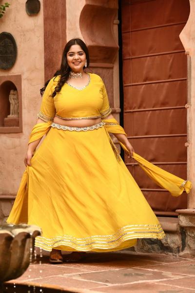 लो-वेस्ट लेहेंग्यांमुळे पोटाचा भाग जास्त उठून दिसतो. याऐवजी हाय-वेस्ट लेहेंगा घातल्यास कंबर नीट कव्हर होते आणि पोट आपोआप कमी दिसते. लेहेंगा नेहमी बेंबीच्या थोडे वर म्हणजेच कंबरेच्या सर्वात अरुंद भागावर बांधा. यामुळे पोटाचा घेर लेहेंग्याच्या आत झाकला जातो आणि तुमची उंचीही जास्त दिसते.