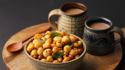 मखाणे भाजून त्यात चवीनुसार मीठ, मसाले घालून तव्यावर हलकेच परतून घ्या. हे मखाणे थंड झाल्यावर एका हवाबंद डब्यात भरून ठेवा.