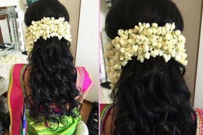 साधा बो बांधलेला असला तरी त्याला रबरबॅण्ड लावतो त्या ठिकाणी असे भरपूर गजरे लावा.. खूप छान लूक येईल.