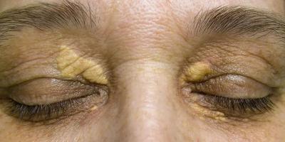 वैद्यकिय भाषेत याला झँथिलास्मा असं म्हणतात. डोळ्यांच्या पापण्यांभोवती कोलेस्टेरॉल जमा झाल्यामुळे हे पिवळे डाग दिसतात.