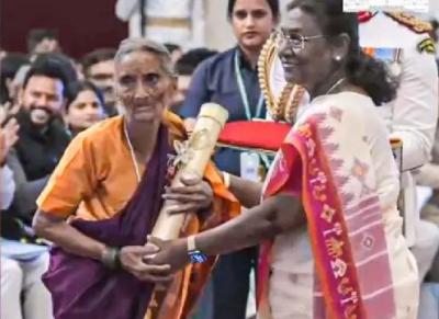 राष्ट्रपती द्रौपदी मुर्मू यांच्या हस्ते भीमव्वा यांना पद्मश्री पुरस्कार देण्यात आला. त्यांच्या या कलेने सर्वांचच लक्ष वेधून घेतलं आहे.