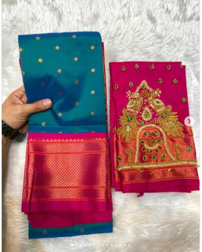 आरी वर्कचे ब्लाऊज हे खास मापाप्रमाणे शिवले जात असल्यामुळे पैठणीचा डौल अधिक सुबक दिसतो आणि शरीराल एक योग्य आकार मिळतो.