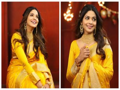 पिवळ्या रंगाच्या साडीवर ब्राऊन किंवा ब्रॉन्झ रंगाचा आयशॅडो सुंदर दिसतो. लिपस्टिक शेडमध्ये, कोरल, ब्राईट रेड किंवा टेराकोटा शेड्मधील लिपस्टिक लावल्याने ओठांना अधिक उठावदारपणा येतो. गालांवर वॉर्म टोन्ड असलेला किंवा ब्रॉन्झ शेडमधील ब्लश लावावा.