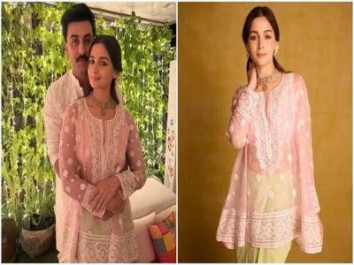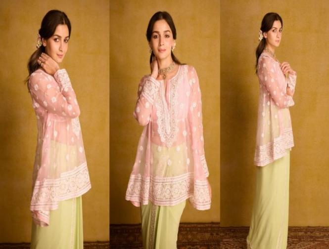 आलियाने दिवाळीच्या खास प्रसंगी जो पोषाख परिधान केला होता, त्यात चिकनकारी कुर्ता होता, जो ऑर्गेंझा फॅब्रिकपासून तयार केला होता आणि त्यावर पारंपारिक पद्धतीचे भरतकाम केलेले होते. हे भरतकाम, खरंतर, पारदर्शक कपड्यावर सूक्ष्म धाग्यांनी केले जाते जे खूपच पारंपरिक आणि आकर्षक दिसते. कुर्त्यावर फूल आणि जिओमॅट्रिक डिझाईन्स मध्ये स्वरोवस्की क्रिस्टल्सचे नक्षीकाम केलेल होते आणि तो अनारकली पॅटर्नमध्ये शिवला होता.