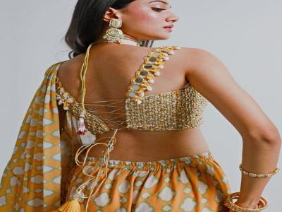 जर तुम्हाला डिप नेक आणि फिटिंगचा ब्लाऊज घालायचा असेल, तर तुम्ही या ब्रॉड डिझाईनचा स्वीटहार्ट स्टाईल नेक डिझायनर मिरर वर्कचा ब्लाऊज घालू शकता.