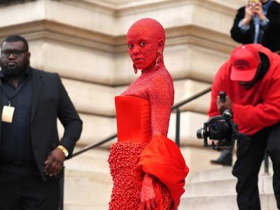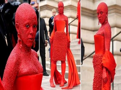 'पॅरिस फॅशन वीक २०२३' मध्ये, अमेरिकन रॅपर डोजा कॅट हीने परिधान केलेला ड्रेस सध्या नेटकऱ्यांचे लक्ष वेधून घेत आहे. डोजा कॅट हीने 'पॅरिस फॅशन वीक २०२३' मध्ये लाल रंगांची पॅन्ट आणि ३० हजार स्वारोवस्की क्रिस्टल पासून तयार झालेला ड्रेस परिधान केला होता(Doja Cat arrived at Schiaparelli’s Paris Fashion Week Show Covered In 30,000 Crystals, Red Paint)