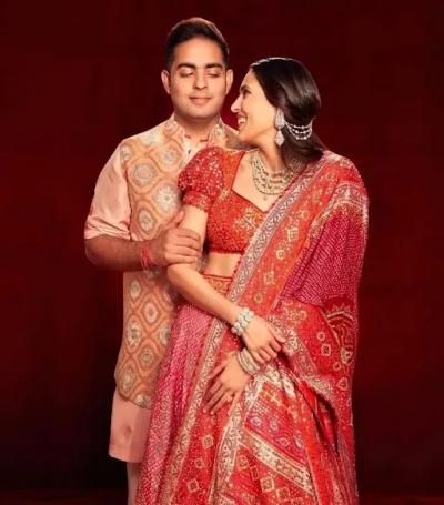अंबानी कुटूंबाची मोठी सून श्लोका मेहता हिनेदेखील अनंत- राधिकाच्या मामेरूसाठी अशा बांधणीच्या घागऱ्याची निवड केली होती.