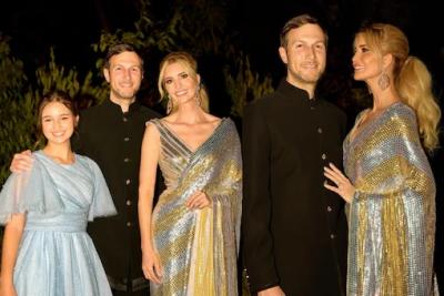 या विवाह सोहळ्यात आपल्या पती आणि मुलीसह उपस्थित असलेल्या इवांका ट्रम्प हिने गोल्डन आणि सिल्व्हर रंगाची सेक्विन साडी नेसली होती. तिची ही साडी मनिष मल्होत्रा यांनी डिझाईन केली होती.