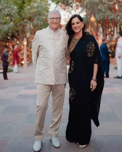 बिल गेट्स यांची पत्नी पॉला हिने काळ्या रंगाची ही सुंदर साडी नेसली होती.