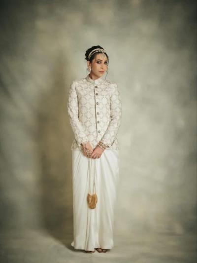 करिश्मा कपूरचा लूक अतिशय वेगळा ठरला. तिने साडीवर बंदगळा जॅकेट असा एकदम हटके लूक केला होता.