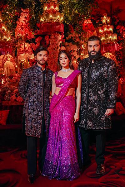 गुलाबी सेक्विन साडीत जान्हवी कपूरही अतिशय देखणी दिसत होती.